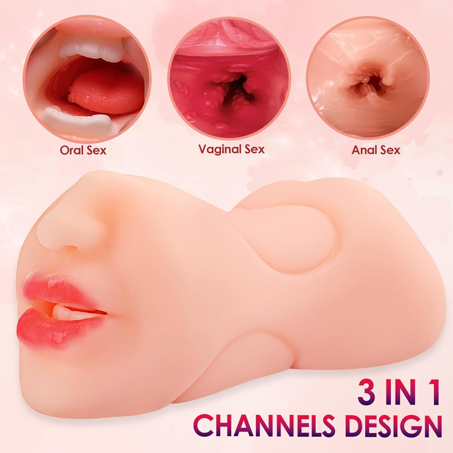 3-in-1 Life Size Male Masturbator – Realistic Vagina, Oral & Anal Simulator, Deep Penetration Full Size Adult Toy for Men