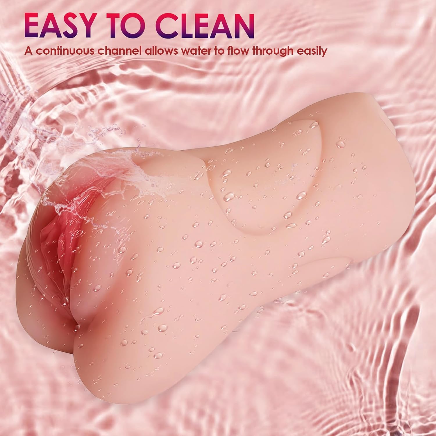 - 【Waterproof & Easy to Clean】This male masturbator stroker is waterproof and easy to clean. The mouth and vaginal hole share the same channel, so simply rinse it by running water through one hole and letting it flow out the other. The anal hole can be stretched open for a deep clean. After washing with lukewarm water, air dry or use a dry stick, then store the toy in a clean, dry place, avoiding direct sunlight